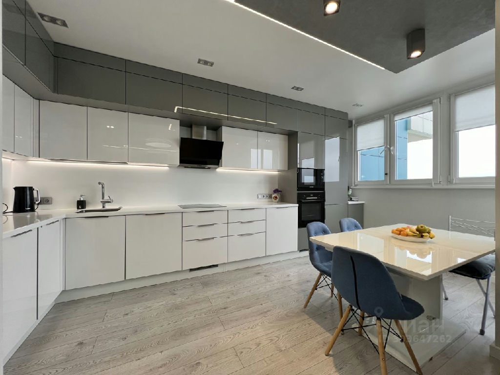 Квартира укомплектована новой, современной мебелью Moon (очень вместительный кухонный гарнитур с каменными фартуком и столешницей, встроенные шкафы в прихожей) и техникой (варочная панель, духовой шкаф, холодильник, посудомоечная машина, вытяжка, два кондиционера, фильтр очистки воды, бытовой измельчитель).